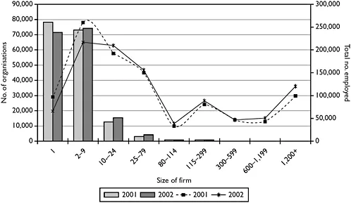 Figure 1.1 Number of UK construction organisations and employment figures in 2001 and 2002