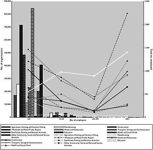 Figure 1.2 Number of UK enterprises and employment figures by industrial sector in 2001