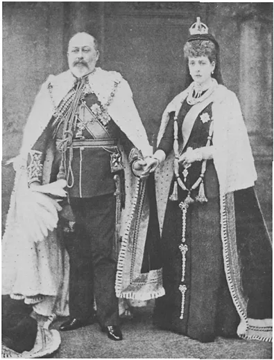 1 King Edward VII and Queen Alexandra in April 1901, three months after the death of Queen Victoria, photographed at the State Opening of Parliament. Queen Alexandra is in deepest mourning. From The Sphere, 6 April 1901.