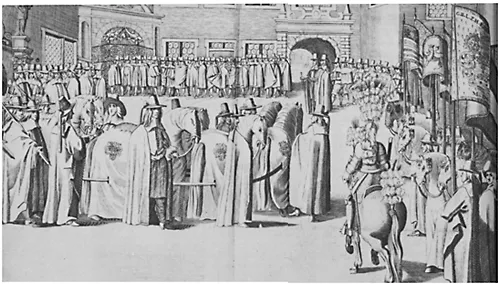 3 Funeral procession of George II, Landgrave of Hesse, Germany, July 1661, based on French medieval etiquette. Engraved by Adrien Schoonebeek.
