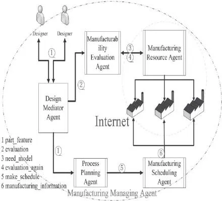 The PpU platform that has been developed is a web-based platform that provides various professional and technological services for distributed manufacturing. The clients can obtain their needed information and services from the PpU platform and the service providers can provide their services through this platform. Figure 1 shows the framework and data flow of the web-based PpU multi-agent system. The PpU platform consists of both the server/system and the client/designer components, which include the Design Mediator Agent (DMA), Manufacturability Evaluation Agent (MEA), Manufacturing Resource Agent (MRA), Process Planning Agent (PPA), Manufacturing Scheduling Agent (MSA), Manufacturing Managing Agent (MMA), service providers and designers (Mahesh et al. 2007).