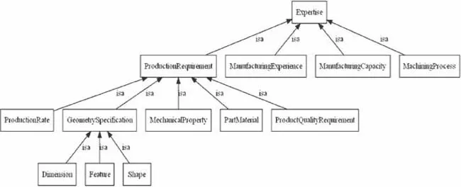 An example on the matching between the ontologies of MRA and MEA based on the material information is presented to illustrate the structure-level ontology matching method. The hierarchy of classes extracted from the MRA ontology is “Manufacturing resource agent → Production resource → Material”. The class names are employed as the keywords that represent the classes in the MRA ontology and other...