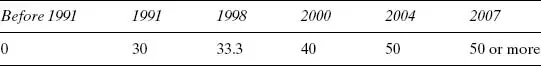Table 1.1 Actual and planned proportion of seats in the legislature directly elected between 1991 and 2007 (%)