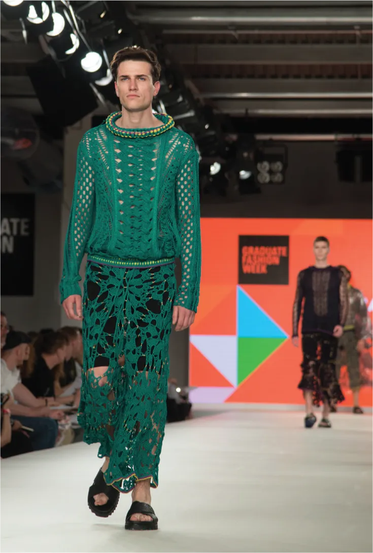 This chapter offers an introduction to knit and knitwear design, comparing traditional knitting techniques with their modern reinventions. It looks at the characteristics and behaviour of different yarns and fibres, from the traditional to the contemporary, such as metallic, steel and plastic. It offers an overview of knitting machines and tools and the different aspects of work that can be produced. Finally, it looks at how developments in design and technology are radically reinventing this traditional craft.