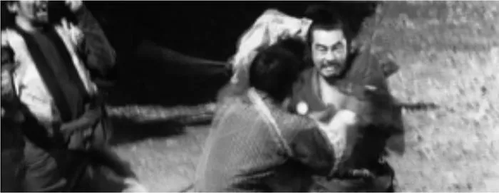 Despite Yojimbo’s reputation for violence, scenes of brutality are actually used quite sparingly in the film, with relatively few such moments appearing in comparison to other 1960s samurai films, or even Kurosawa’s earlier work, Seven Samurai. The graphic scenes, spread throughout, are used to punctuate key moments, often sudden and unexpected, so the audience doesn’t become desensitised to their effect.