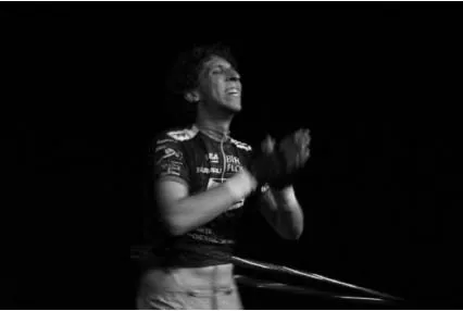 (âEye of the Tigerâ plays as people are seated.1 The music cuts out abruptly and a spotlight reveals Brian sitting center stage, responding to an unseen doctor.)
