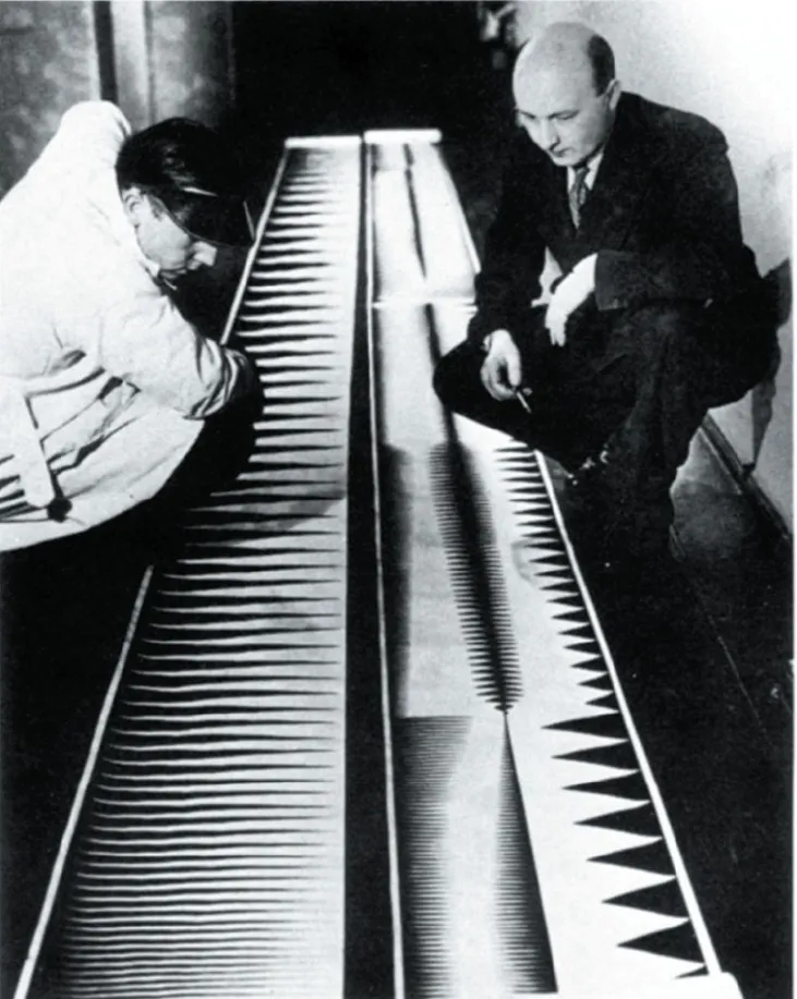 4 Oskar Fischinger ‘at work’ on his Experiments in Hand Drawn Sound (a staged publicity photo), Germany, 1928.
