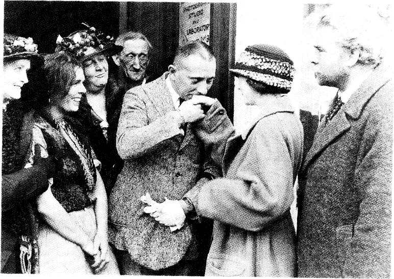 ZaSu Pitts and Gibson Gowland greeted by von Stroheim upon arrival in San Francisco