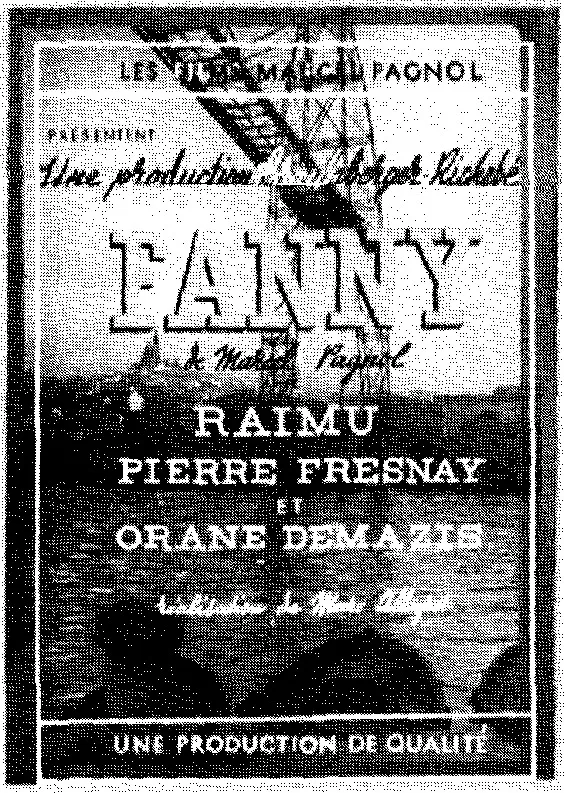 Paramount also had the screen rights to the play, Fanny but Kane released them, apparently believing that the success of Marius had exhausted the commercial potential of the Marseille comic-drama vein. In 1932, therefore, Pagnol joined forces with producer and distributor (and soon-to-be director) Roger Richebé, a fellow Marseillais, to form a company to make Fanny (Richebé's parents had opened one of the very first cinemas in Marseille, guaranteeing popular success – the cinema was called Le Populaire – by pledging that tickets would never cost more than a glass of beer). Pagnol adapted the play and, on Richebé's advice, gave the direction of the film to Marc Allégret, though himself participating actively in the shooting, much to Allégret's exasperation. Not that the tensions impaired the film's success, which was greater even than that of Marius.