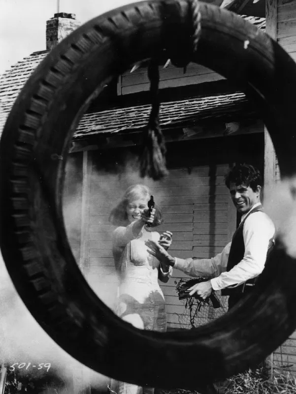 Penn now cuts to a greasy, nondescript diner where Clyde tells Bonnie the story of her dreary existence as a waitress. He correctly surmises how every day she returns home from the dingy restaurant she hates, stares into the mirror and desperately wonders, âWhen and how am I ever gonna get away from this?â At this point, Penn incorporates one of the subtle, soundless moments of realisation that fill this movie. An older waitress, sporting garish red hair and witlessly snapping her gum, brings the couple their food. Noticing the spit curl hugging her ear, a parallel style to Bonnieâs hairdo, Clyde authoritatively tells his new partner, âI donât like that. Change it.â She obediently complies. The figure of the older waitress contains the potential future of Bonnie Parker if she refuses to alter her fate. Her life will consist of greasy food and dumb truck drivers, a joyless existence that will extinguish all the sparks of creativity and intelligence she clearly possesses. Given this fleshy prophecy, we immediately understand why Bonnie opts for crime over tedium, no matter what the consequences. They exit the restaurant, steal another car and head down the road.