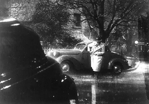 It does rain in the movie, but this is the rain laid down on studio streets by sprinkler systems, the puddles placed like beauty spots, the lights arranged so that rain looks like the nightâs negligee. Indeed, there are studious efforts to play fair by nature in the movie. When Marlowe goes bookstore hunting, there is an appealing air of some Los Angeles street, and yet it has no sky, no real threat of wildness, and so Marlowe strolls and drolls around, as elegant as Astaire. And when he goes up to Geigerâs house in the hills, there is a charming masquerade of hilliness, with a garden, inclines, trees and damp night air. So much care has been taken to avoid just going out and finding some pretty, sinister nook in those Hollywood hills that could be Laverne Terrace, Geigerâs place, and the kind of address you have to check out carefully to make sure it never existed in L.A. Looked at closely, the elaborate, craftsmanly exterior set is every bit as arranged as what Marlowe finds inside the Laverne Terrace cottage. And then later, much later, when Marlowe goes down to Realito â which, if you think about it, is a name to tease detectives and scholars â we get a lovely atmosphere of road, mist and a wayside garage. But itâs all a set, a moody gesture towards the little town Chandler dreamed up in orange grove country: