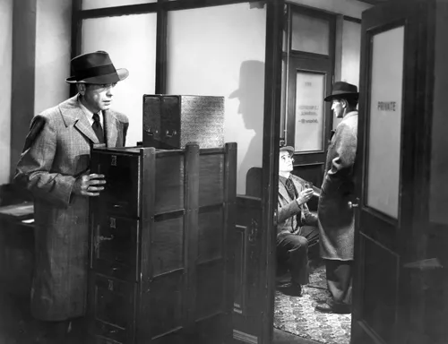 And I can hardly separate my good spirits from the steady spectacle â at full or three-quarters length â of the drably dressed Bogart carrying all before him: standing up to the heat of General Sternwoodâs greenhouse; rallying at the net with Bacall; pushing Joe Brody in a circle until the creep cracks; plugging Canino; kissing Mrs Rutledge; and just generally looking so damn good and being so wry that you feel better about everything. Itâs a dark world, and nearly every composition offers the shape of claustrophobia, if you want to feel gloomy. But Bogart handles himself and the space as deftly as Joe DiMaggio running left field. The space is like his shadow, or familiar.