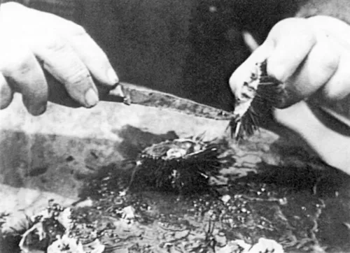 Dalì père serves up a sea urchin in Menjant garotes, Buñuel’s vanity movie of April 1930 (Filmoteca de Catalunya)