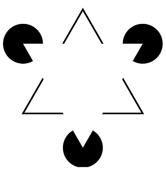 This same process of visual aggregation also can make us âseeâ things that arenât there. A graphic example of this can be seen with a Kanizsa triangle (see figure 1.1). Here, our visual perception creates a differentiation that has no material reality. Our brains take the corner images of the triangle and, based on these strong cues, register the sides. Since we are habituated to see triangles, our visual perception creates them, even when they donât otherwise exist. This is an unconscious heuristic, a way we form a judgment about reality based on a limited amount of information. But it is a judgment that is not fully accurate.