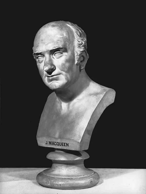 Figure 2: Photograph of a plaster bust of James MacQueen executed by Edgar Boehm (1882). According to the RGS Museum catalogue, c. 1914, the bust itself was kept in the Tea Room around this time, but does not seem to have survived to the present. By permission of the Royal Geographical Society (with the Institute of British Geographers).