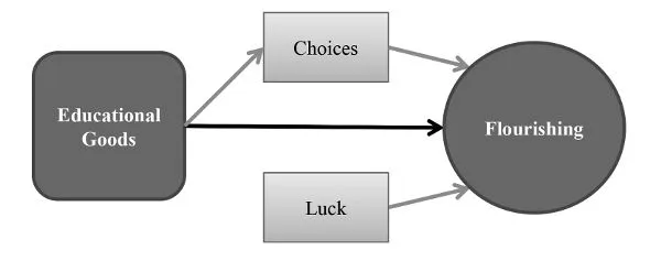 The fundamental value that underlies our discussion of educational goods is human flourishing. Educational goods help peopleâs lives go wellâand what matters, ultimately, is the creation and distribution of opportunities for people to flourish. We focus on opportunities for flourishing rather than flourishing itself because the most that educational goods can do is equip people with what they need for their lives to go well, including the capacity to make good choices. Whether people do in fact choose well is a further question. Luckâserious injury or illness, for exampleâis also bound to play a role in determining the extent of peopleâs flourishing however well equipped they are and however well they choose. Figure 1.1 describes this relationship.