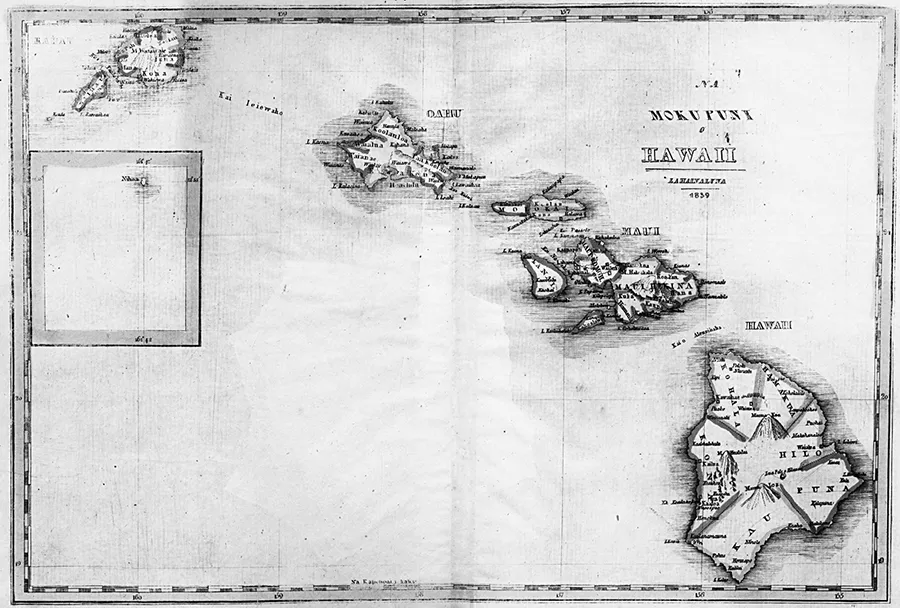 FIGURE 1.1. Na Mokupuni O Hawaii [Map of the Hawaiian Islands], 1839. Drawing: Lahainaluna Prints. Source: Hawaiian Mission Childrenās Society Library.