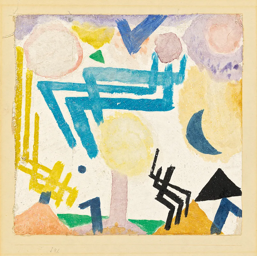 Figure 1.3 Paul Klee, Landscape Hieroglyph with Emphasis on Sky-Blue (Landschaftliches Hieroglyph mit Betonung des Himmelblau), 1917, 104. Watercolor on primed linen on cardboard, 16.5 à 17 cm. Zentrum Paul Klee, Bern, Livia Klee Donation. © 2014 Artists Rights Society (ARS), New York.