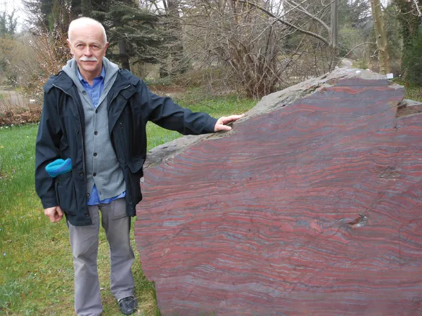 Figure 1.1. A schematic of the geological column showing its chronology in billions of years (to the left) and highlighting some major evolutionary events (to the right). The vast majority of the geological column is occupied by the Precambrian, and many of the most important historical events are recorded in this span of time. For example, the origins of living things are indicated by the oldest known deposits of graphite and stromatolites. The major deposits of banded (oxidized) iron ores indicate the presence of free oxygen (and thus the evolution of photosynthesis). The appearance of the red algae in the fossil record is evidence for the evolution of multicellular eukaryotic organisms, and the fossil remains of land plants indicate that these organisms evolved features that permitted growth in the air. It is important to bear in mind that the oldest evidence for any of these evolutionary events is likely not the earliest appearance of these features since future discoveries may reveal still older occurrences.