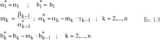 Si se cumple la condición de diagonal dominante para la matriz: |αi| > |γi| + |βi-1|, (para todo i), entonces el proceso de eliminación de Gauss-Jordan queda dado por el algoritmo de Thomas: