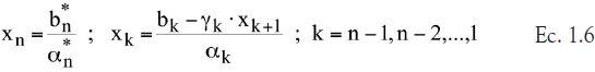 Y la etapa de sustitución hacia atrás queda como