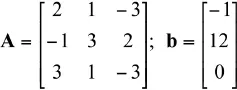 A=[2 1 -3; -1 3 2; 3 1 -3];