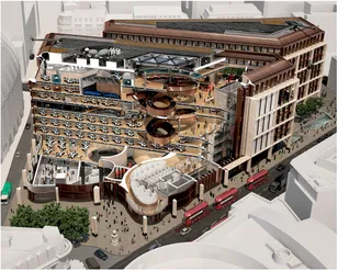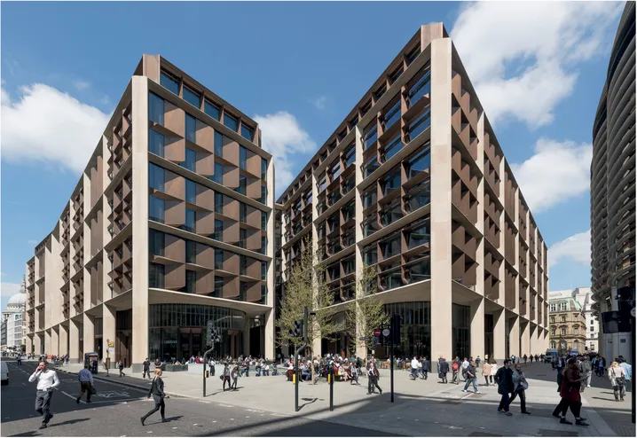The Bloomberg headquarters, which won the RIBA Stirling Prize in 2018 (making it officially the best building in the UK for that year), also works hard to be a good neighbour. The original planning permission was for a 21-storey tower that would have sat among open space. Bloomberg challenged this, instead creating a 10-storey building that occupies most of the site. But that ‘most of’ is important. It is split into two unequal parts, with between them a ‘new’ street, which is in fact the reinstatement of the old Watling Street, following a desire line between Cannon Street and Cheapside.