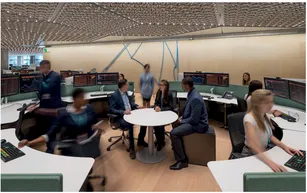 FIGURE 1.2 'The Vortex' funnels arriving workers towards the correct lift.