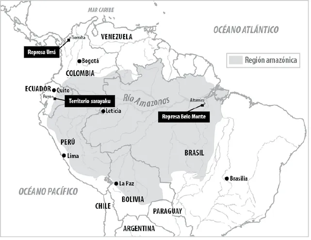 Comencé el proyecto con un estudio sobre la represa de Urrá, ubicada en el norte de Colombia, en el mismo lugar donde tuvo su sede principal el sangriento movimiento paramilitar que, en oscuras alianzas con las fuerzas armadas y la clase política, se ha disputado el control del territorio y el negocio del narcotráfico con las igualmente violentas guerrillas de izquierda, en especial las Fuerzas Armadas Revolucionarias de Colombia (FARC) (mapa 1.1). En el medio del fuego cruzado quedó el pueblo embera-katío, que perdió al menos veintiún líderes asesinados por uno y otro bando y, tras veinte años de desplazamiento forzado y pérdidas humanas y ambientales por los efectos catastróficos de la represa, hoy corre el riesgo de extinción física y cultural.