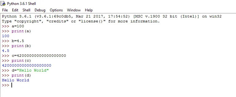 - Integer - Normal integers or numbers. Eg. 4321