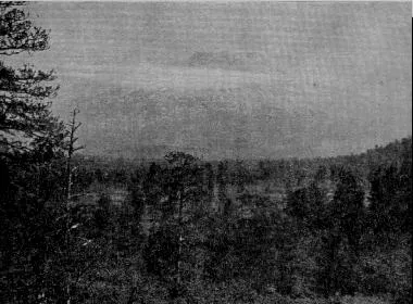 The Cinder Cone near marks the most recent volcanic eruption in the Sierra. It is a symmetrical truncated cone about 700 feet high, covered with gray cinders and ashes, and has a regular unchanged crater on its summit, in which a few small Two-leaved Pines are growing. These show that the age of the cone is not less than eighty years. It stands between two lakes, which a short time ago were one. Before the cone was built, a flood of rough vesicular lava was poured into the lake, cutting it in two, and, overflowing its banks, the fiery flood advanced into the pine-woods, overwhelming the trees in its way, the charred ends of some of which may still be seen projecting from beneath the snout of the lava-stream where it came to rest. Later still there was an eruption of ashes and loose obsidian cinders, probably from the same vent, which, besides forming the Cinder Cone, scattered a heavy shower over the surrounding woods for miles to a depth of from six inches to several feet.