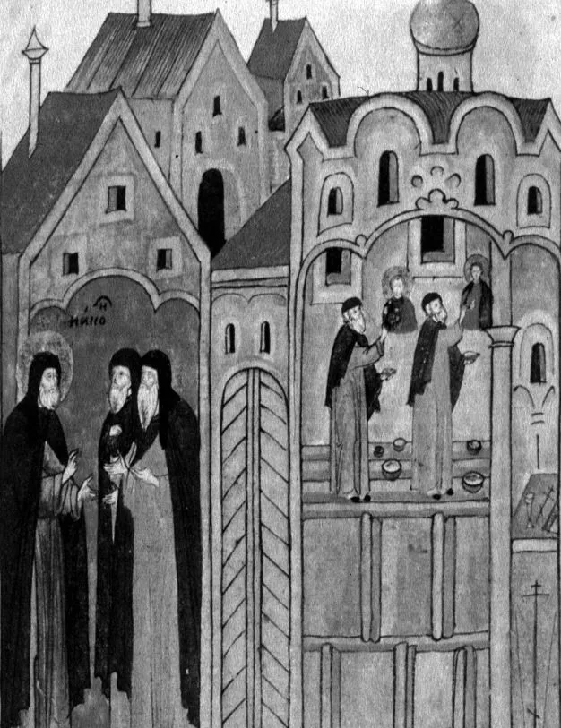 the most venerable [Nikon] was overcome with a great wish, and with faith; remaining continuously in this state, he desired to see with his own eyes the church completed and decorated; so he quickly gathered painters, very great men, superior to all others, and perfect in virtue, Daniil by name and Andrei his spiritual brother, and some others with them; and they did the job quickly, as they foresaw in their spirit the death of these spiritual fathers, which would follow soon upon the completion of the task. But since God was helping to complete the venerable oneâs task, they devoted themselves to it assiduously and beautified the church with the most diverse paintings, which to this day are capable of astounding viewers. Leaving their final handiwork as a memorial to themselves, the venerable ones remained a short while before the humble Andrei left this life and went to the Lord first, and then his spiritual brother Daniil the most pious, who had lived well with Godâs help and who piously accepted a good end in old age. When Daniil was preparing to separate himself from his bodily union, he saw his beloved Andrei, who had preceded him in death, and called out to him in joy. When Daniil saw Andrei, whom he loved, he was filled with great joy and confessed the coming of his spiritual brother to the monks who stood before him, and thus in joy he gave up his spirit to the Lord.8