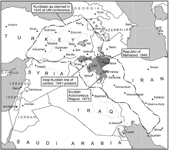 Kurdistan, or the homeland of the Kurds, is a strategic area located in the geographic heart of West Asia. The Kurds are an ancient race that inhabited the contiguous mountain region that falls under the southeastern part of modern Turkey, the north and eastern part of Iraq, the northeastern part of Syria and the northwestern part of Iran for about 3,000 years (or longer, as some historians insist), retaining their own language, customs and culture. These parts were created on two different occasions: first in 1514 when Kurdistan was divided between the Ottoman and Persian empires following the battle of Chaldiran;1 secondly between 1920 and1923 when Britain and France further altered the political contours of Kurdistan by dividing Ottoman Kurdistan among Iraq, Iran, Syria and Turkey (Meho and Maglaughlin 2001: 3). A fierce and independent collection of wild mountain tribes, they had ferociously defended their terrain and somehow managed to survive the succession of conquering armies including Assyrians, Persians and Greeks that marched and countermarched across Anatolia and Mesopotamia over the centuries. Prior to World War I, Kurdish territories were divided between the Persian and the Ottoman Empires. In order to maintain their exploitation in the colonised areas, the colonising powers, especially the British, resorted to the divide-and-rule strategy pitting one ethnic group against the other. This policy heightened ethnic conflict and fragmentation. The world system as an externally activating variable has played a critical role in politicising ethnic differences and the resulting political conflicts. The British imperialism provoked Kurdish nationalist aspirations for an independent Kurdistan but pitted Armenians and Kurds against each other to block its actualisation. Since the goal of imperialism was to appropriate the oil fields of the Kurds in the south, the creation of a centralised neo-fascist and imperial state was the critical solution.