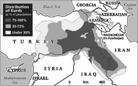 Fig. 1.3 Kurdistan Identified by Population Distribution
