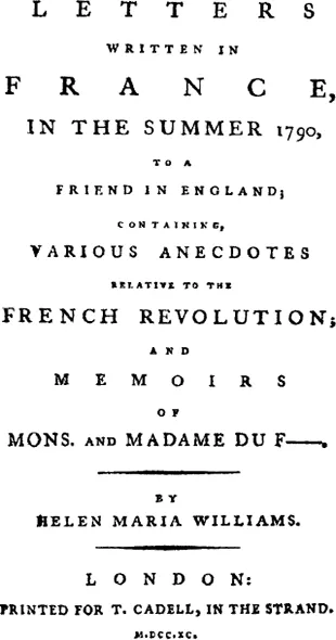 Helen Maria Williams was a poet, novelist, and radical thinker deeply immersed in the political struggles of the 1790s. Her Letters Written in France is the first and most important of eight volumes chronicling the French Revolution to an England fearful of another civil war. Her twenty-six letters recounting old regime tyranny and revolutionary events provide both an apology for the Revolution and a representation of it as sublime spectacle.