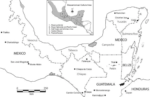 Figure 1.1. The Mesoamerican culture area, showing modern political borders and sites mentioned in the text.