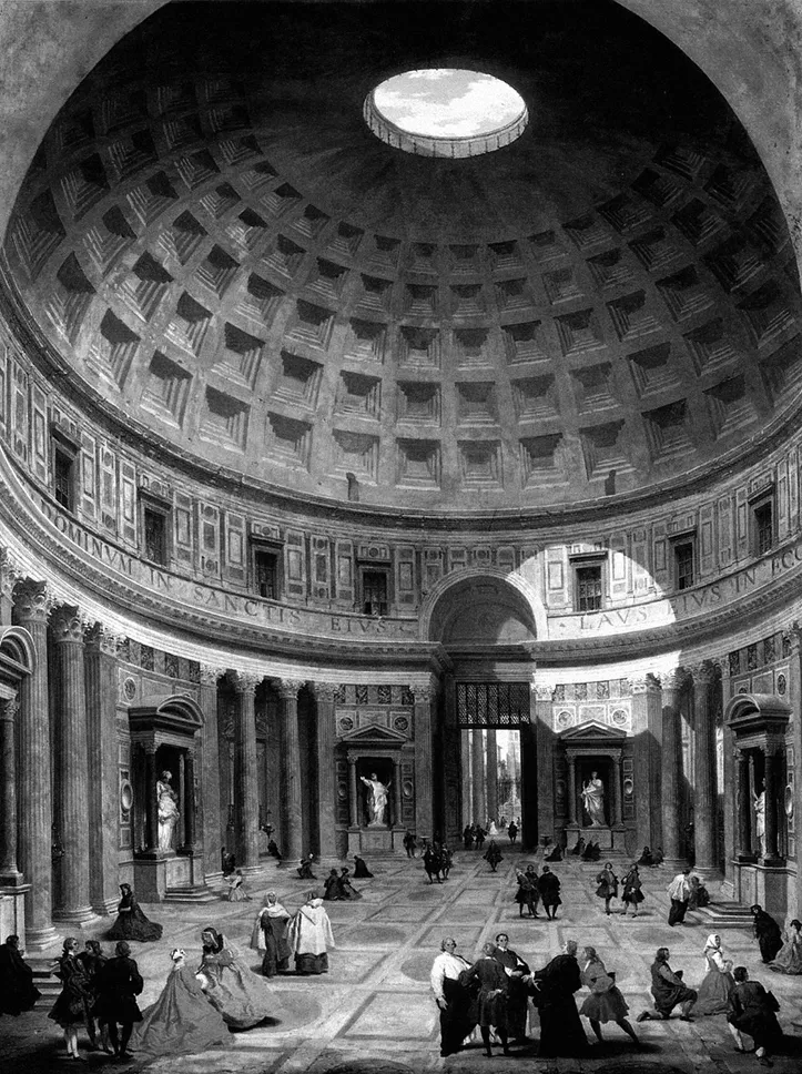 Figure 1.1: Romeâs Pantheon, built nearly 1,900 years ago, is still the largest unreinforced dome in the world. Painting by Giovanni Paolo Panini, ca. 1730. Public Domain.