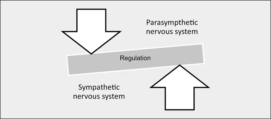 Physiologically, regulation occurs when there is, essentially, a balance between the sympathetic and parasympathetic branches of the nervous system.1