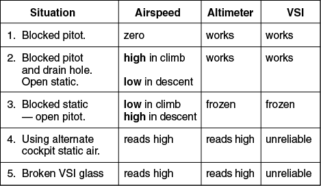 Airplanes equipped for instrument flight have pitot tube heaters, virtually identical to the resistance elements in your kitchen toaster, and they soak up a prodigious amount of electricity. Airplanes approved for instrument flight in commuter or on-demand operations must have pitot tube heaters. The pitot heat should be turned on before you fly into visible moisture, so that ice has no opportunity to form on the pitot tube. If water gets into the pitot plumbing it will cause erratic indications or worse. When the tubing connecting the pitot head to the airspeed indicator is blocked by ice, the air trapped between the point of blockage and the diaphragm in the instrument will expand as the airplane climbs, and the airspeed indicator will react as an altimeter, indicating higher airspeeds as altitude increases. A cross-check of the other instruments (especially the altimeter and VSI) will quickly pinpoint the ASI as having failed.