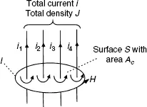 The magnetic field intensity H is defined by Ampereās law. According to Ampereās law the integral of H [A/m] around a closed path is equal to the total current passing through the interior of the path (note that a line above a quantity denotes that it is a vector):