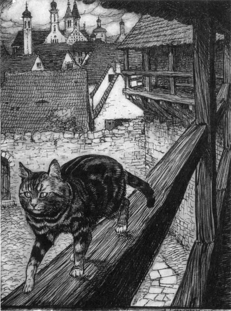 and, as the child has a white ring round its neck, I cannot refuse.” The good mouse consented, but the cat crept behind the town walls to the church, and devoured half the pot of fat.