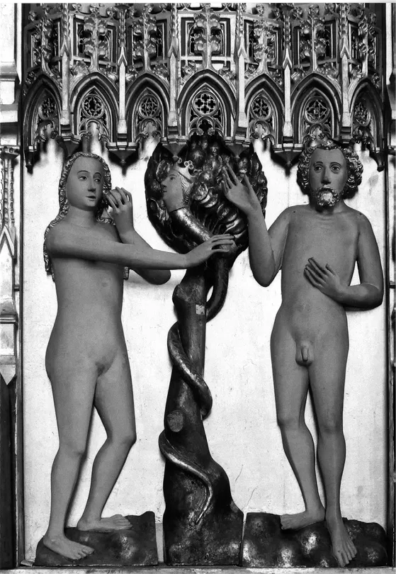 FIGURA 1 Anónimo, Adán y Eva en el paraíso (h. 1370), catedral de Doberan, Bad Doberan, Alemania