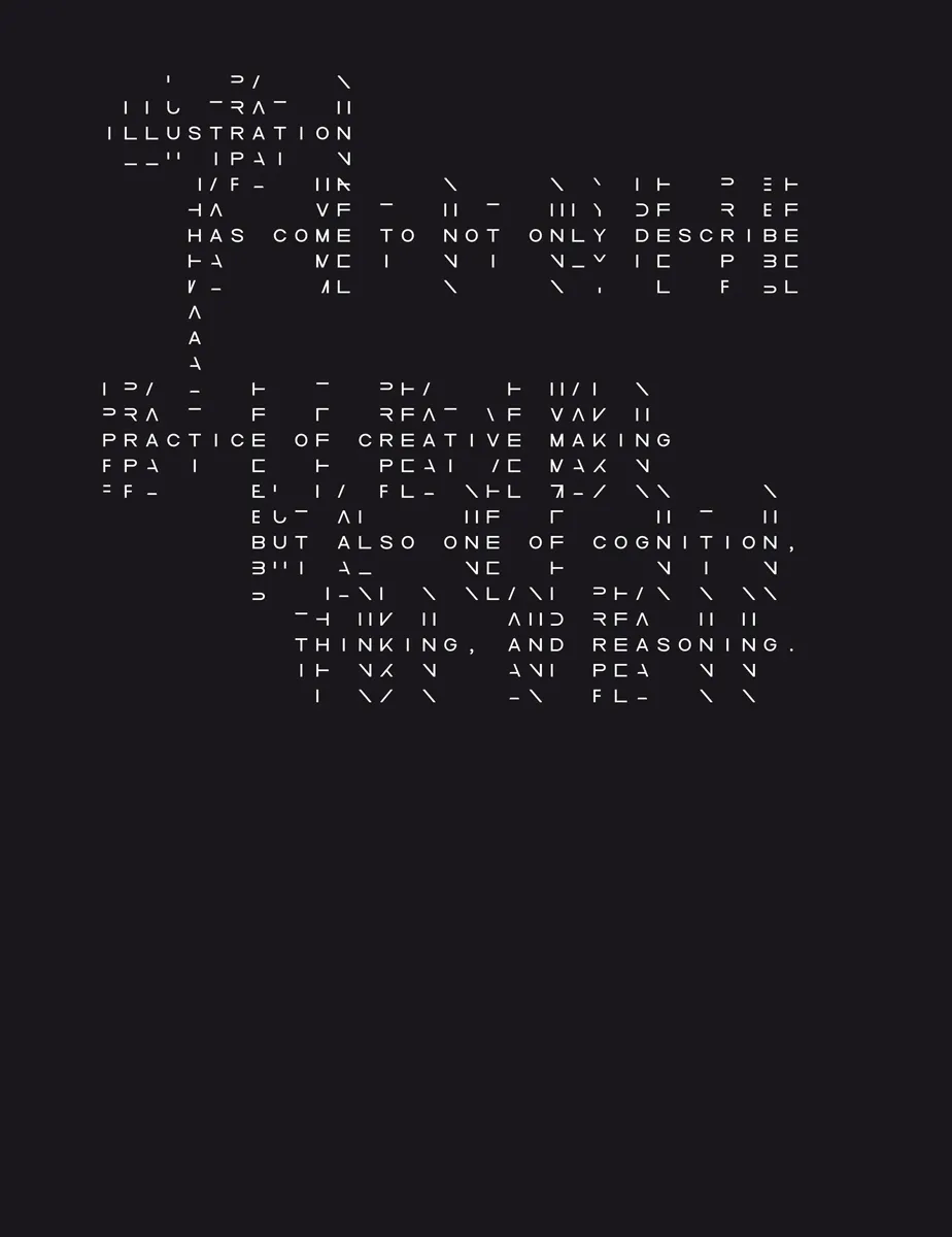 Regardless of whether illustration is considered an established or emergent discipline, it has lacked the subject-specific critical eloquence established within other artistic disciplines. While much is gained from engaging in cross-disciplinary discourse, illustration too often looks outside itself for rationalisation and inspiration in the absence of its own intellectual tools. Terminologies and languages are frequently adopted from other fields to articulate illustration-specific behaviours and engagement; for example, illustration is often described as being ‘read’.