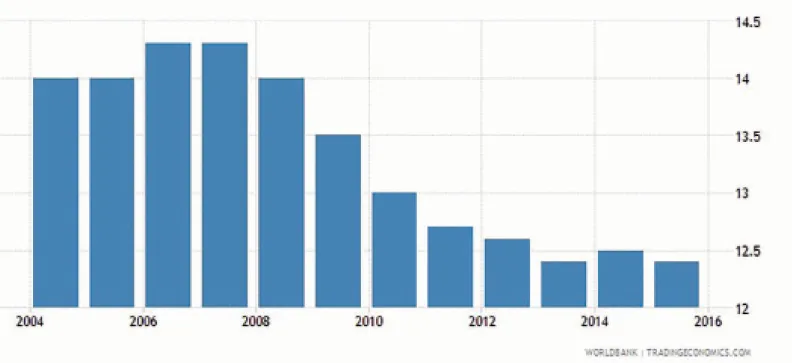 The basic measure of fertility is crude birth rate, the number of live births per one thousand women in population. Crude birth rate indicates the number of live births occurring during the year per one thousand population. Crude birth rate is influenced by the age structure of the country’s population. It will be higher in a population where more of the women are in the childbearing ages, roughly fifteen forty-nine. It may also be influenced by the sex composition. If there is a higher percentage of women in the population, the crude birth rate may be higher. But it may also be influenced by the level of education of women in a society. More educated women who have higher incomes and live in urban areas may not adhere to traditional gender ideology. They simply love their life as it is. These women value their freedom and independence and don’t have time for children. Crude birth rate in the United States was reported at 12.4 in 2015 (World Bank 2016). Subtracting the crude death rate from the crude birth rate provides the rate of natural increase, which is equal to the rate of population change in the absence of migration.