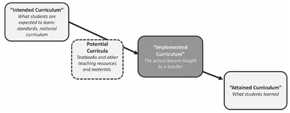 However, despite recognizing the need to teach students how to think mathematically, there have been challenges in meeting this goal. International studies, such as the Trends in International Mathematics and Science Study (TIMSS), evaluate student achievement through the lens of Travers and Westburyās (1989) three aspects of curriculum: āintended curriculum,ā āimplemented curriculum,ā and āattained curriculumā (Mullis, Martin, & Loveless, 2016; Travers, 2011; Travers & Westbury, 1989). The āintended curriculumā are the formal documents that describe what the students are expected to learn, such as CCSS and NCTM standards. The āimplemented curriculumā are the lessons taught by a teacher. The āattained curriculumā is what the students actually learned (International Bureau of Education, 1995). Textbooks and other resources serve as potential curricula (e.g., Schmidt, McKnight, Valverde, Houang, & Wiley, 1997). They are designed to address the intended curriculum, but effective implementation relies on the skills of the teacher (Figure 1.1.02). This is why the lecture method, or simply āteaching the textbook,ā cannot successfully impart the intended curriculum by contemporary standards.