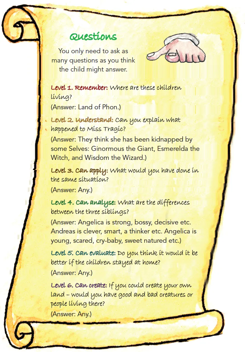 A prequel to the storybook, Who Put the Spell into Spelling?, From Tragic to Magic tells the story of three siblings who set out to rescue their teacher, Miss Tragic. As they battle with a giant, a witch and a wizard, they encounter three phonological challenges that focus on syllables, rhyming and phonemes.