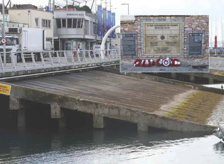 The Torquay Slipways D-Day Embarkation Hards. As the panels explain, 68 hards were built between Falmouth and Felixstowe in 1942–43 providing berths for LCTs and LSTs. Those at Torquay were unusually steeply inclined, supported by reinforced concrete frameworks. The hards were operated by a dedicated detachment. Core personnel included a Commanding Hardmaster and Embarkation Staff Officers who would oversee loading, a maintenance and repair crew, which would expand to 40 men when in operational use. Where the hards were used exclusively by American troops, the US forces provided crews.