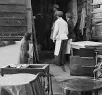 Troops await their turn to embark in Plymouth on the hardstanding used today for the Torpoint Ferry. The warship in the right background is USS Augusta, flagship for the Western Task Force. This Northampton class heavy cruiser was used as a presidential flagship and carried both Franklin D. Roosevelt and Harry S. Truman. Augusta left Plymouth on June 5 with Lt-Gen Omar Bradley and his staff on board. They would finally disembark and set up on French soil on June 10.