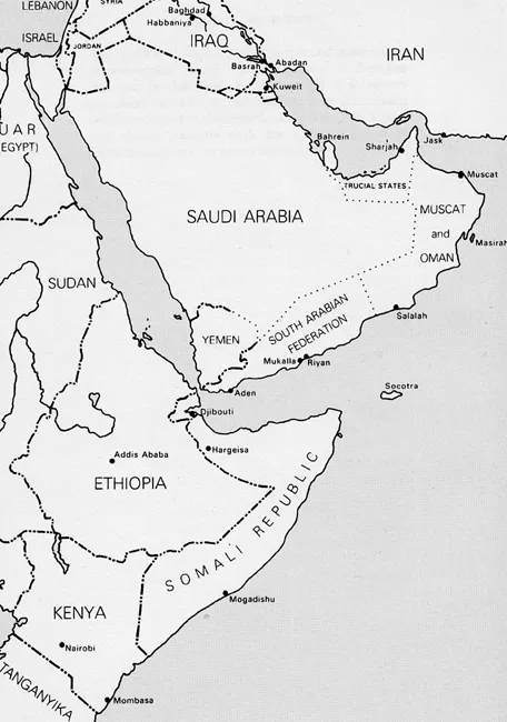 Fig 1. Position of Aden & The South Arabian Federation in the Middle East of 1965. ©CROWN COPYRIGHT/MOD.