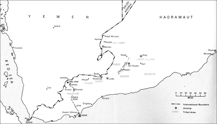 Though Aden became a separate colony from the Indian Raj only in 1936, additional territory had been gradually brought under British protection, from 1873 onwards, through some ninety separate treaties with inland Arab sultans, forming the Aden Protectorates (renamed in 1963 the Federation of South Arabia). This was nothing more than a loose federation of independent states providing, inter alia, defence in perpetuity for those sultanates and sheikdoms. We were the law in Aden, but not in the protectorates unless requested. This interaction caused most of the ensuing problems and, as with Iraq, the area was too feudal, too medieval, and impossible to govern. The Federation stretched almost 1,000 miles from Aden in the south-west to the Dhofar region of Muscat & Oman in the north-east. As well as the border with Yemen, some of the Federationâs borders edged on southern Saudi Arabia, the empty desert quarter. Post World War II, AHQ Aden controlled some thirty small and widely scattered stations, including outposts on Kamaran Island in the Red Sea off the Yemeni port of Hudada, Perim Island in the mouth of the Red Sea, and Socotra Island off the Horn of Africa.